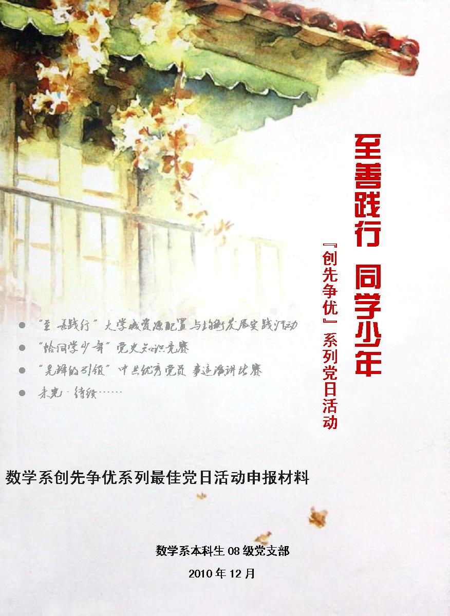 数学系08级本科生党支部“至善践行,同学少年”创先争优系列党日活动喜获今年会官网最佳党日活动一等奖