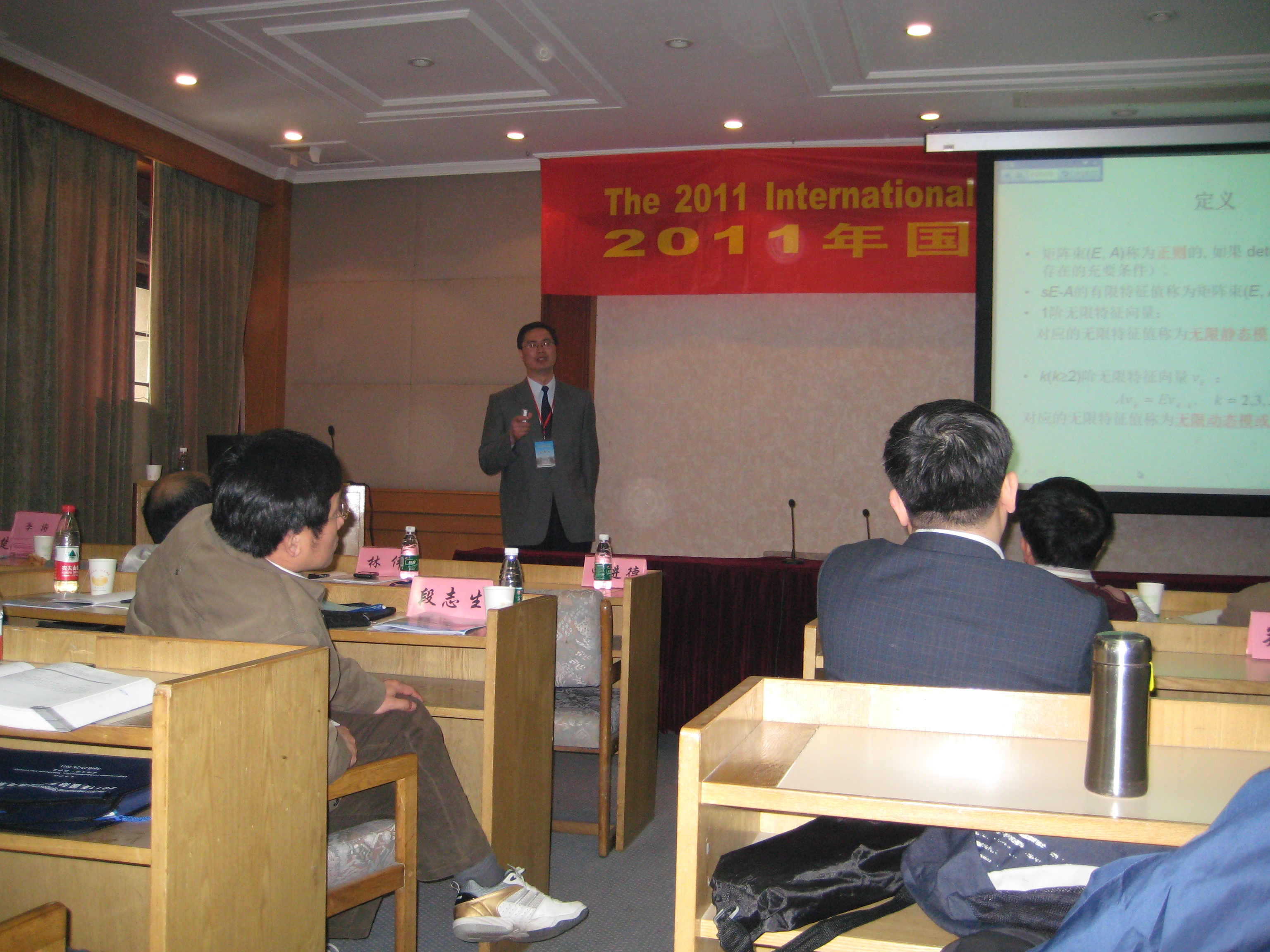 | 4月23日上午8:30,由我系主办的2011年国际复杂网络与系统会议(The 2011 International Symposium on Complex Networks and Systems)(ISCNS 2011)开幕式在今年会官网春晖小礼堂举行。本次会议为期两天,邀请到中国工程院院士、国网电力科学研究院名誉院长薛禹胜教授、香港城市大学陈关荣教授等12名国际著名专家做大会报告,90余名来相关领域的学者出席,围绕复杂网络与复杂系统、多智能体系统、非线性系统与控制、系统生物学、传感器网络、通信网络、网络控制系统及其应用展开了热烈的讨论。 |