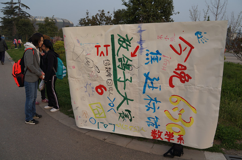 | 正值2013年4月1日“愚人节”到来之际,为缓解同学们的紧张学习压力,活跃校园气氛,数学系团委主办、学生会承办的“愚人节”整蛊活动在九龙湖校区取得了圆满成功。 4月1日早上6点50分,同学们在梅园跑操路线的终点处,安排了一个“破墙而出”的恶作剧,给当天跑操的同学们都带去了一份惊喜。我们拉出了“今晚6:30 焦廷标馆放鸽子大赛”的倒字海报,引来不少同学驻足围观,由于我们刻意把海报放横了,所以经过的同学们都不得不歪脖看海报,形成了特别的围观人群。就在跑操终点人群聚集得越来越多时,躲在海报背后,戴着搞笑面具的工作人员从海报后一跃而出,跳到人群中央,着实把大家吓了一跳。然后戴着面具的同学来到人群中给围观同学分发糖果,给大家带去了愚人节的别样祝福,换来一片叫好声。 同日中午下课后,同学们再次聚焦在梅园食堂门口开展了“集体望天”的两项愚人节活动。大家先围成一群作仰望天空状,由于我们的“全神贯注”,吸引了不少同学顺着我们眼神的方向望向天空,当意识到自己被整蛊之后,我们便派出同学送上小礼品,并祝其愚人节快乐。 活动取得了圆满成功,丰富了同学们课外生活,调节了校园紧张学习气氛,同时也为增进同学之间感情搭建了桥梁。那一张张笑脸,一次次恶作剧,一份份精美礼品,传递的都是同学们的情谊。愚人节,愚人却不愚弄感情,活动虽小,传递的是我们想为校园的这个春天增添一丝活力的心意。(数学系学生会供稿) |