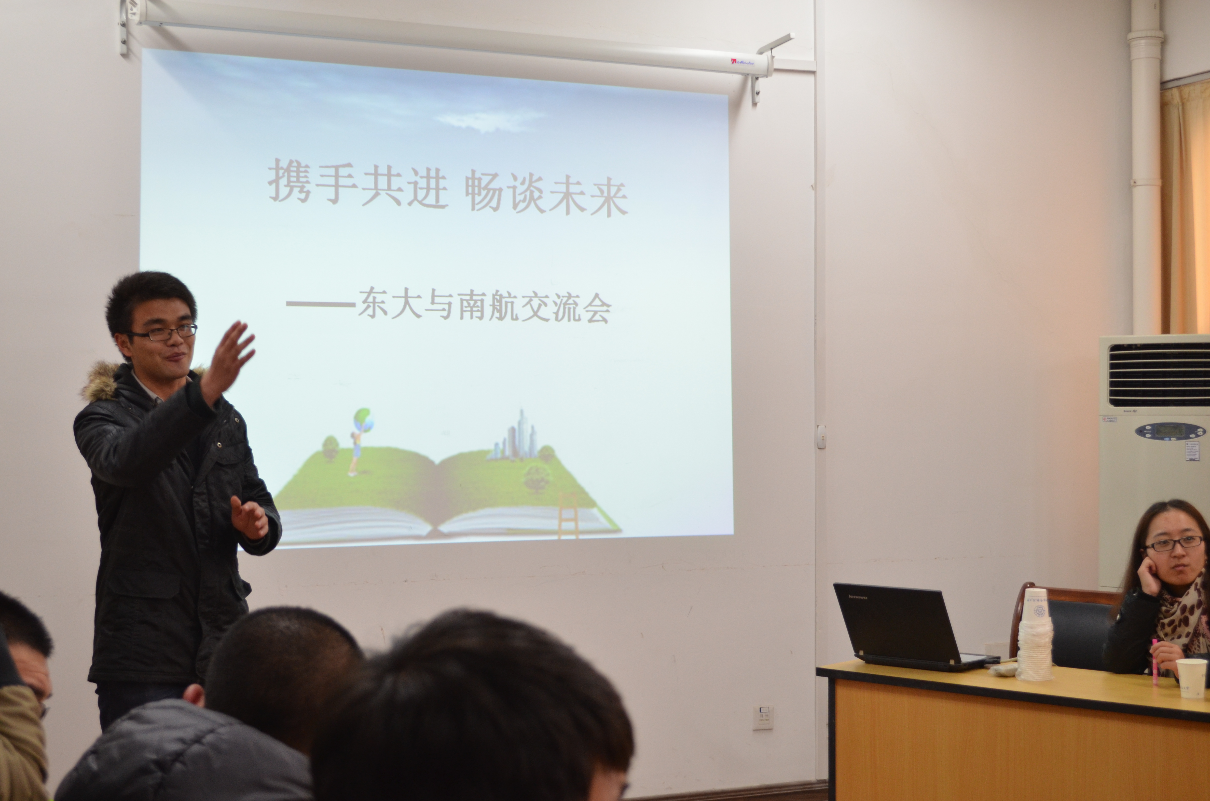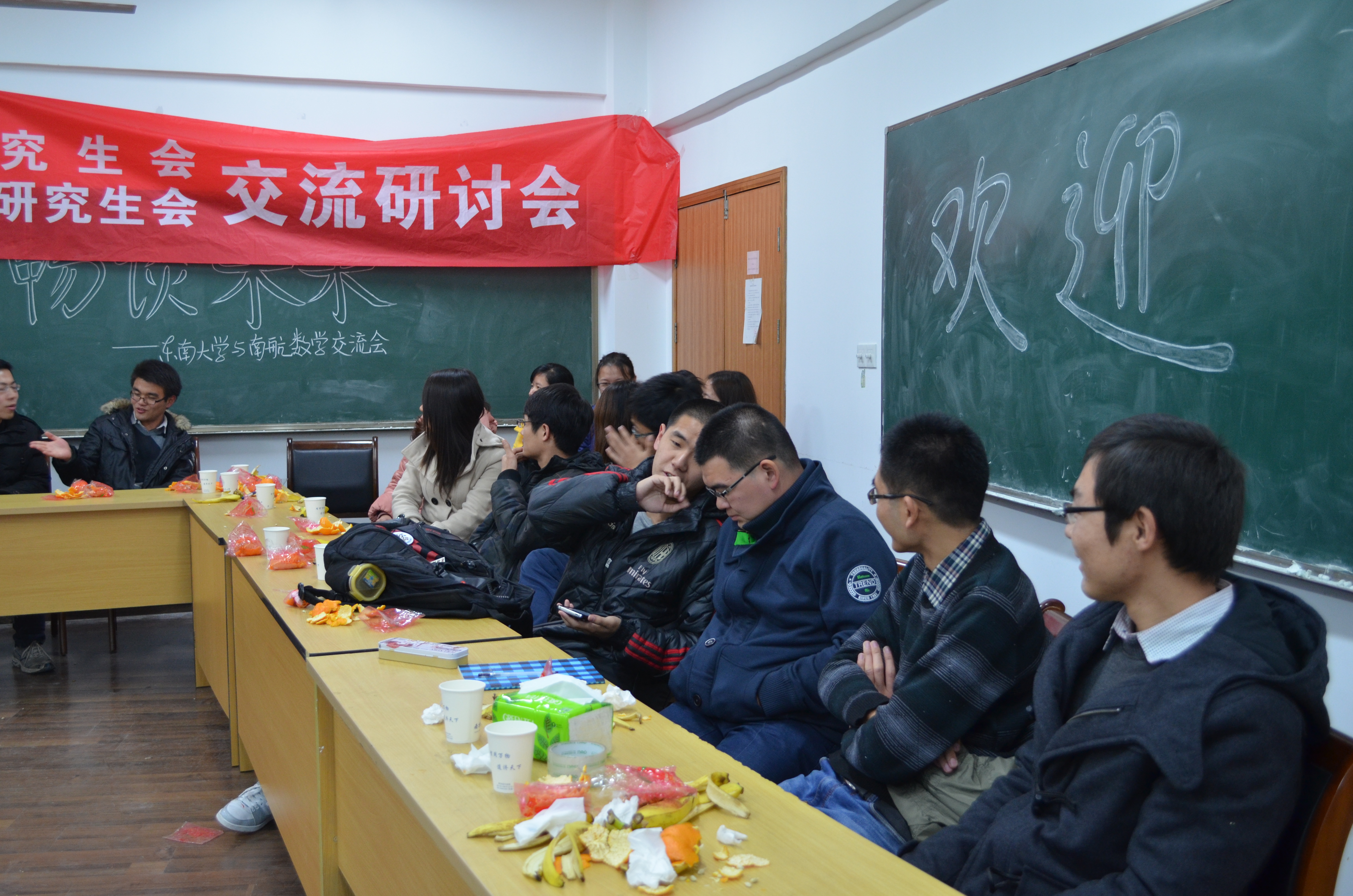 | 2013年12月8日下午15:00在南京航空航天大学理学院会议室,由数学系团委、研究生会主办,南京航空航天大学理学院研究生会协办的“携手共进 畅谈未来”交流研讨会顺利举行。 研讨会活动主要分为以下几个部分:一是学校层面上的交流,听取他们对于“I want you”中国梦的想法,了解他们在这方面所做的工作,另外交流话题将范围缩小至学校,就如何实现“南航梦”(东大梦)进行交流,提出一些建设性意见,取长补短,共建理想校园;二是院系层面上的交流,双方学生就生活、工作、学习等各方面问题进行交流(例如讨论班、科研经验分享),具体了解南航数学系学生的科研状态以及日后的就业情况。 此次活动是数学系研会上学年与南林交流活动的一个延续,加强了两个学校两个院系的交流,进一步开拓了我系研究生的视野。本活动旨在为深入学习宣传贯彻党的彻落实两会精神,深入贯彻落实科学发展观,传播放大立德树人的“正能量”,激励广大学生学习先进、崇尚先进、争当先进。围绕复兴今年会官网,努力使东大早日实现成为“世界一流大学”的“东大梦”主题,积极对外交流,努力学习先进经验,取长补短,共同进步,从各个方面不断完善我们心目中的东大。同时激发广大同学的爱国荣校情怀,奋发进取、不断努力,在自己的工作和学习上取得更大的进步。 |