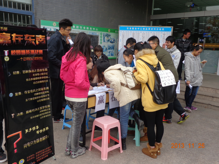 | 由共青团今年会官网委员会主办、数学系团委承办的第五届“赢在东南”校园精英挑战赛,于2013年11月28日正式拉开帷幕,经过将近一个月的角逐,12月12日晚6:30,在圆形报告厅一楼成功举办决赛,最终活力四射的四匹狼斩获冠军,精卫、4ever one分别获得亚军和季军,而Elivictor、水果忍者获得了优胜奖。数学系党委书记李涛老师、计算机软件学院党委副书记裴峰老师、人文学院党委副书记何熠老师、艺术学院党委副书记徐进老师、以及数学系党委副书记曹海燕老师出席并为决赛担任评委老师。此外,我们还有幸邀请到了来自南京林业大学就业办的陈养彬主任和理学院的师生代表一齐参加了本场决赛。 “赢在东南”来源于央视节目“赢在中国”,旨在今年会官网的校园内提供一个大学生展示自我、挑战自我的平台,发掘自身潜力,发挥团队配合、相互协作的价值,借此品味人生、感悟成长,实现梦想,获取成功。自2007年至今“赢在东南”已成功举办五届,且之前的每届赢在东南均被评为当年校园文化节“校园十佳精品活动”,已成为数学系的一大品牌文化盛典。 今年的“赢在东南”校园精英挑战赛共分为初赛、复赛、决赛三个环节。初赛舌战东南通过无领导小组讨论的形式,从前期报名的近300名同学中,经过激烈的竞争,筛选出32名选手随机分成8组进入复赛的角逐。12月4日晚,复赛夺宝奇兵之探秘东南第一环节破冰之旅成功在图书馆数学系第二报告厅举行。当晚的团队风采展示、暗夜骑士、鸡蛋撞地球三个评比环节设计让各小组成员加深了解,配合也越来越默契,为复赛的校外部分奠定了良好的基础。 12月7日,各小组在四牌楼校区附近展开了复赛校外赛的比拼,虽然当天早上雾霾天气较严重,但各支队伍参赛热情依旧高涨。校园景点的探秘、碎片拼图、教陌生人唱校歌,以及从拼图开始的以物换物环节,充分考验了各个参赛团队全方位的综合能力。紧张的一天校外复赛后,5支队伍成功挺进决赛。 12月12日,5个从复赛中脱颖而出的队伍正式进入决赛筑梦东南的对决。第一环节团队风采展示,各支队伍以独特的方式展现他们的自信与活力,也展示了他们一路走来的感悟与成长;第二环节谢天谢地你来啦,由各队根据现场抽取的题目,通过情景剧的形式,针对工作人员抛出的情景模拟问题进行即兴表演;最后一个环节东大名片,要求选手现场展示并解说他们基于调查分析与自身感受为东大绘制的一张特色名片。 最终,四匹狼斩获冠军,精卫、4ever one分别获得亚军和季军,而Elivictor、水果忍者获得了优胜奖。数学系党委书记李涛老师对决赛进行了点评,对赢在东南活动给予了高度的肯定,同时也鼓励大学生应当努力提高自身综合素质,通过活动展现自我,锻炼自我,尤其强调了每一名东大人其实才是东大最好的名片! 第五届赢在东南校园精英挑战赛为广大参与者提供了一个良好的平台,既能让他们将所学知识应用于实际,又能锻炼自己团队配合、沟通交流等能力,将自己打造成学习能力出众,能言善辩又善于配合的大学生。通过此次比赛,选手们既锻炼了各项能力,展示了自身风采,也收获了友谊、自信与难忘的经历。赢在东南,既圆了同学们一个成为精英的梦想,也埋下他们不断提升自己,立志为东大梦、为中国梦贡献力量的种子。 |