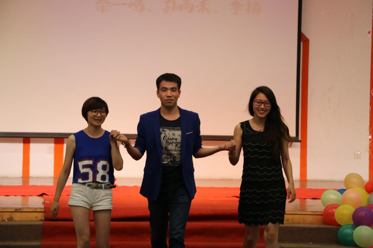 青春不散场,让我们后会有期---记数学系”后会有七“2011级毕业生晚会时光荏苒,弹指一挥间,弹走了珍贵的大学四年。在即将迎来毕业之际,2015年5月14日晚,数学系2011级全体学生齐聚圆报二楼,参加了数学系举办的“后会有七”毕业生晚会。 当晚19时,“后会有七”数学系毕业生晚会准时拉开帷幕。出席本次晚会的有数学系系主任曹进德老师,数学系党委副书记、副系主任曹海燕老师,070111班主任、副系主任虞文武老师,070113班班主任姚玲玲老师,王小六老师,070141班班主任阮琳琳老师和070143班班主任乔会杰老师。来自数学系其他年级的同学们也来参加了学长学姐的欢送庆典。 此次晚会共有八项节目。开场视频过后,《跃动青春》走秀开启了晚会庆典。数学系11级的同学们分组上台走秀,并伴随着对他们大学四年的介绍,展示了11级同学们在运动、才艺、知识、技能等方方面面的动人风采。随后数学系三位辅导员以及各位老师们上台,并由数学系系主任曹进德教授发表致辞,表达对11级同学们的诚挚祝福。 之后的节目广场舞《狐狸吃苹果》、相声表演《看这四年》以及之后的歌曲串烧,都体现了同学们的多才多艺,精彩的表现让全场观众欢呼不断。袁煜昶老师演唱《十年》,表达了对珍贵时光的真情与怀念。 第五个节目视频《我们走过的四年》,用一个个往日精彩瞬间的轮换,道出了这最欢乐珍贵的四年。随后的歌曲串烧唱跳型节目《歌•舞•青春》、诗歌朗诵《后会有七》和小品《慢镜头下的真相》也是八仙过海,各显神通,大四同学们出色的才艺展示令人赞叹不已。 另外,这八项节目之间还穿插了两个互动游戏,分别是在第四、五个节目之间的《抱团来领奖》和小品之后的《你画我猜》。第二个互动游戏过后,大家一起为袁老师庆祝生日。11级同学们挨个走上前去表达感激,并送上精心准备的礼物。袁老师十分感动,真情表达了对同学们的感谢以及对他们美好未来的祝福。 “后会有七”毕业生晚会最后就在同学们一齐笑着高举酒杯的画面中结束了。从4年前初次走进今年会官网在数学系相遇,到4年后的今天共同举杯畅饮,四年间,与老师同学们的一点一滴,都牢牢记在心里。纵使未来天涯各自飞,但他们的心,却早已紧紧相连。青春从不散场,同伴后会有期。祝愿他们今后每一个人的人生,都能走得无比精彩。(通讯员:何铭)  |