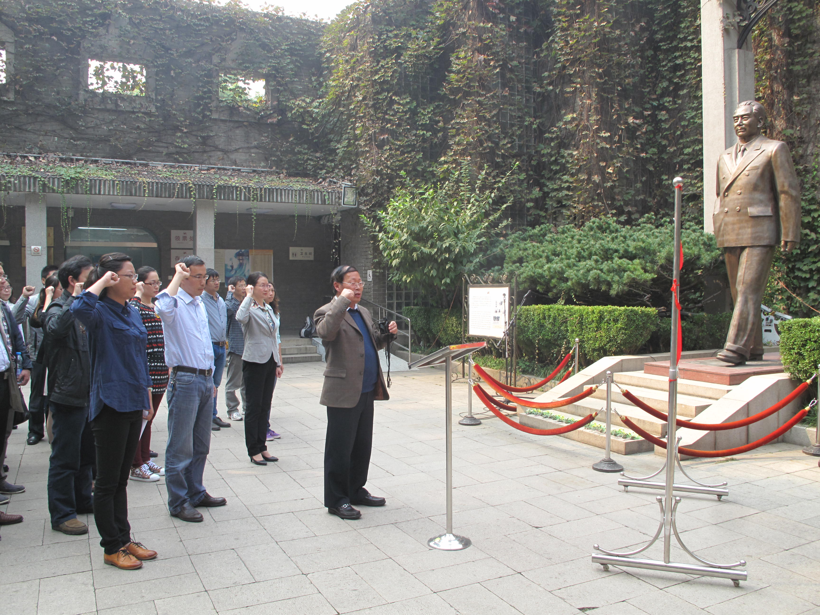 为了贯彻落实从严治党的要求,深入开展“三严三实”专题教育活动,数学系全体教职工党员于10月16日赴梅园新村纪念馆开展以“重温入党誓言,学习、实践‘三严三实’”为主题的党日活动。 全体党员首先来到周恩来铜像前,瞻仰周恩来铜像,缅怀先辈的丰功伟绩,并举行了由系党委曹海燕副书记主持的主题活动,党委吴映红书记作了讲话:她指出希望大家通过今天的活动能进一步学习周恩来总理崇高的理想信念、高尚的道德情操和严实的工作、生活作风。并介绍了近期数学系开展“三严三实”专题教育活动的进程,以及“三严三实”的内涵和重大意义,希望大家按照“严”和“实”的要求,加强党性修养,坚定理想信念,提升道德境界,追求高尚情操。接着,系主任曹进德教授带领大家重温了入党誓词,对全体党员进行了一次思想教育,增强了大家的党员意识。 随后大家参观了纪念馆以及《学习周恩来,做“三严三实”好干部专题展》。大家认真聆听讲解员介绍,驻足参观图片资料,真切感受老一辈无产阶级革命家的忘我精神和英雄气概,加深了对“三严三实”要求的理解和领悟。纷纷表示,要把周恩来同志视为一面镜子,认真对照、自我提升,要将“严”与“实”作为修身之本、为政之道、成事之要,要爱岗敬业、勤奋工作,以实际行动为实现中华民族伟大复兴的“中国梦”和数学系更好、更快的发展作出应有的贡献。 参观结束后,全体党员来到金陵工人影城观看党史教育片《没有共产党,就没有新中国》。