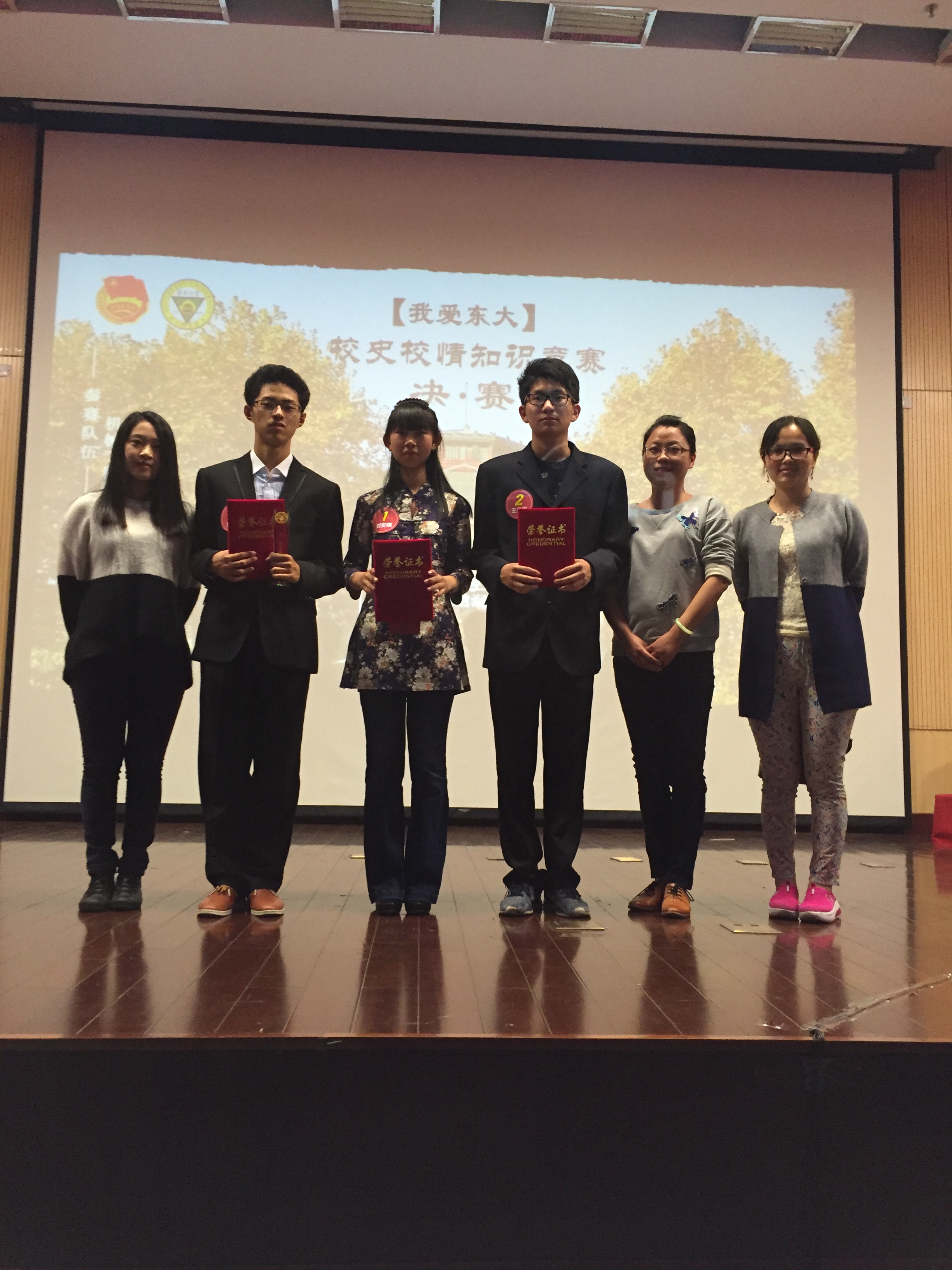 1029日晚六点,我爱东大第十二届校情校史知识竞赛决赛在图书馆润良报告厅隆重举办。来自数学系15级的王乔宇、周晓、刘安琪同学代表我系参加了本次决赛,并最终斩获二等奖的喜人成绩!