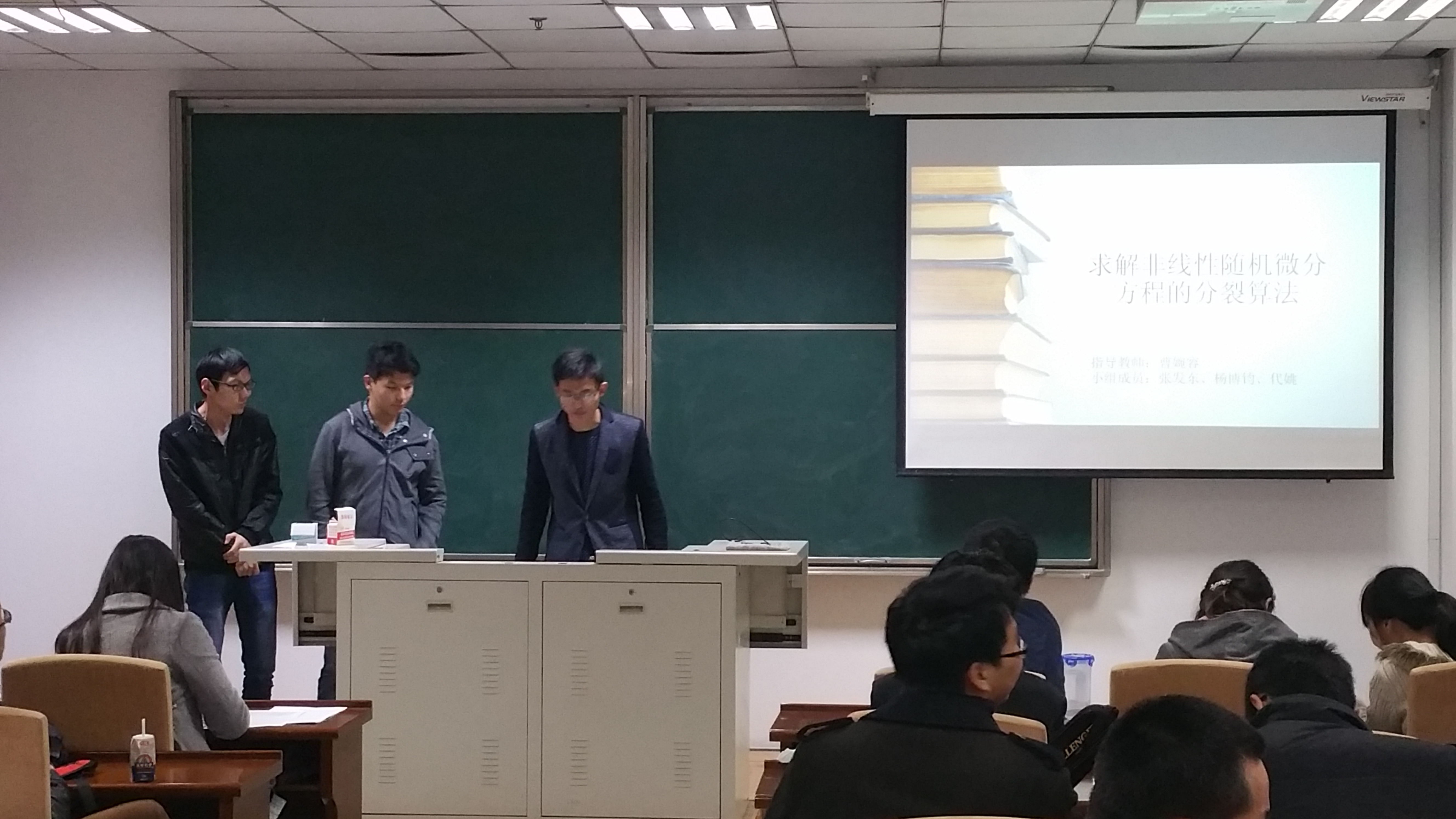 | 11月17日中午12:00在数学系第一报告厅举行了数学系2016年基于教师科研项目答辩会,目的在于选出优秀的基教项目确定直接立项名单和参加教务处额二次评审的名单,并取得了圆满成功。参加本次大会的有来自数学系的的聂小兵老师,汪红霞老师,钟思佳老师,徐新冬老师和来自教务处的任亚梨老师。 答辩现场,气氛十分紧张。台上小组认真展示着,给审核老师以最好的表现。台下小组同学认真听着,不时传来轻声的讨论,似乎都是屏息忐忑的。一共有10组基教团队参加了本次答辩,并以抽签的方式决定展示的顺序,每一个项目团队进行五分钟的展示,并接受评审老师的提问。 最先展示的是来自14级的冯昱文同学,研究项目是关于光子晶体光子禁带的,之后来自数学系13级和14级的各个团队也都非常生动清晰的为大家展示了各自项目的一些基本情况包括背景内容以及创新之处等。其中,有的团队着重于理论方面的研究比如非线性偏微分方程的相关研究或是非线性方程的算法问题,还有的团队密切联系实际,比如两样本函数型数据的显著性区域的自动识别研究主要是基于电动游戏的治疗数据,还有的团队还会对罗马控制数进行深入的研究等等。同学们也被一个个有趣又非常有意义的课题深深吸引,兴致盎然,受益匪浅。 最终根据评审打分确定直接立项分别是由13级统计专业孙丽带领的主题为高频金融数据波动率的的估计与实证研究的项目以及13级应数专业尹海安带领的主题为物联网环境下多智能体系统协调行为分析与控制的项目,同时还有另外五组项目可以进入教务处的二审。在此对这些项目组的同学表示祝贺,同时也希望没通过的小组不要放弃,这些项目还可以申请为校级srtp项目,之后还会有许多机会能够升为省创或者国创,同样可以获得较多的经费支持,来完成预期的研究目标。基教只是本科生进行学术研究的众多方式之一,也希望所有同学可以积极开拓创新,努力锻炼自己的科研能力!! |