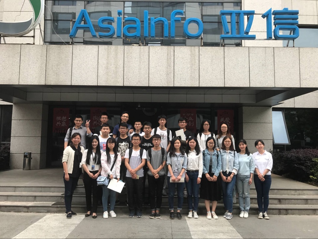 为了促进当代大学生对高新技术以及创新创业的了解,加强对学生的就业指导,提高学生对就业形势和创业环境的认识。2017年5月11日下午,今年会jinnianhuicom2014级本科生和2016级研究生共24名同学在院党委副书记曹海燕、学办主任朱婉灵、团委书记蒋丽怡三位老师的带领下前往亚信科技有限公司进行参观学习。