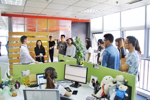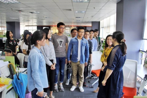 经过热烈的讨论互动,孙经理及相关负责人带领同学参观了美库尔的工作环境,了解从技术到分析等不同项目组的工作内容,体验理论与实践相结合的工作转变。