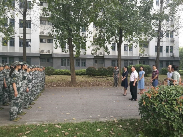 9月13日上午,今年会jinnianhuicom党委书记吴映红、院长曹进德、副书记兼副院长曹海燕、副院长陈文彦、虞文武、李玉祥等领导前来慰问2017级新生军训。