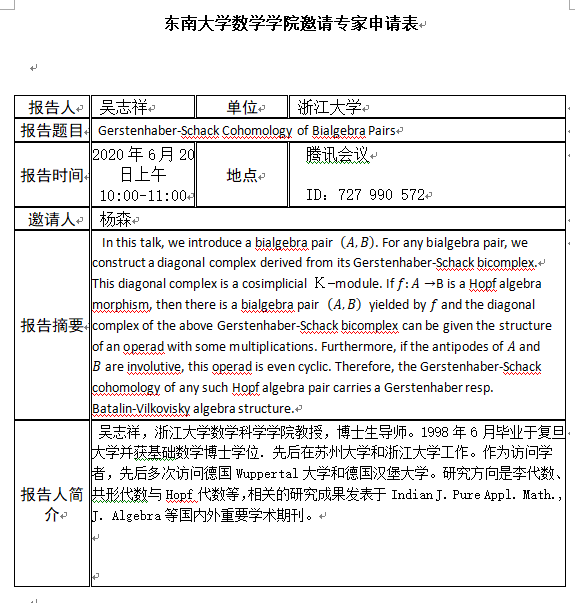 学术报告:2020年6月20日10:00-11:00,浙江大学-吴志祥