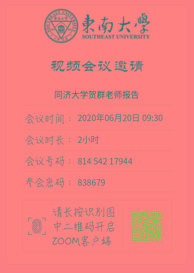 学术报告:2020年6月20日09:03开始,同济大学-贺群