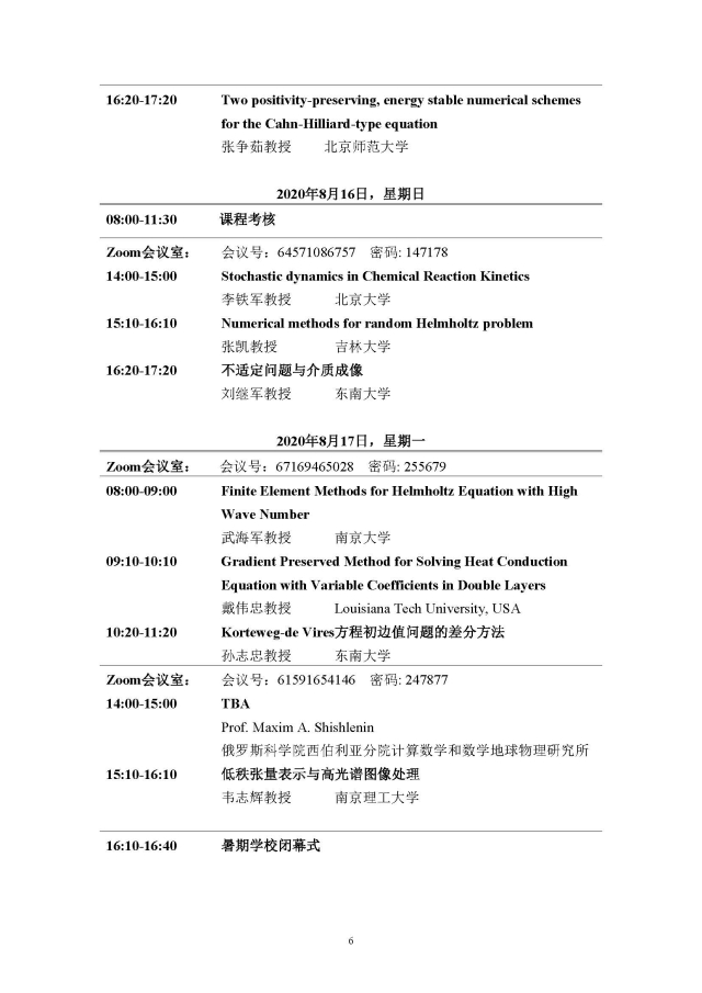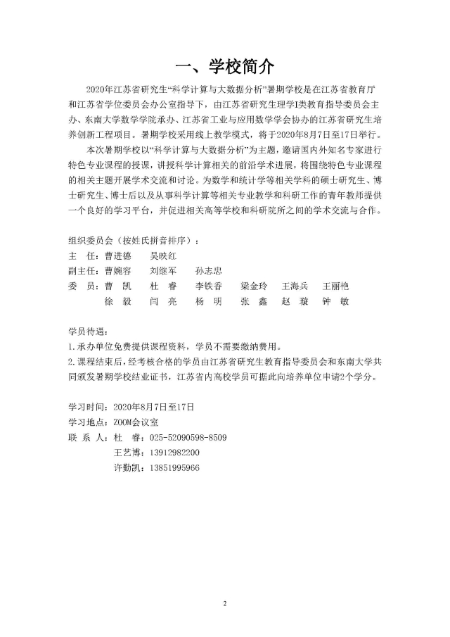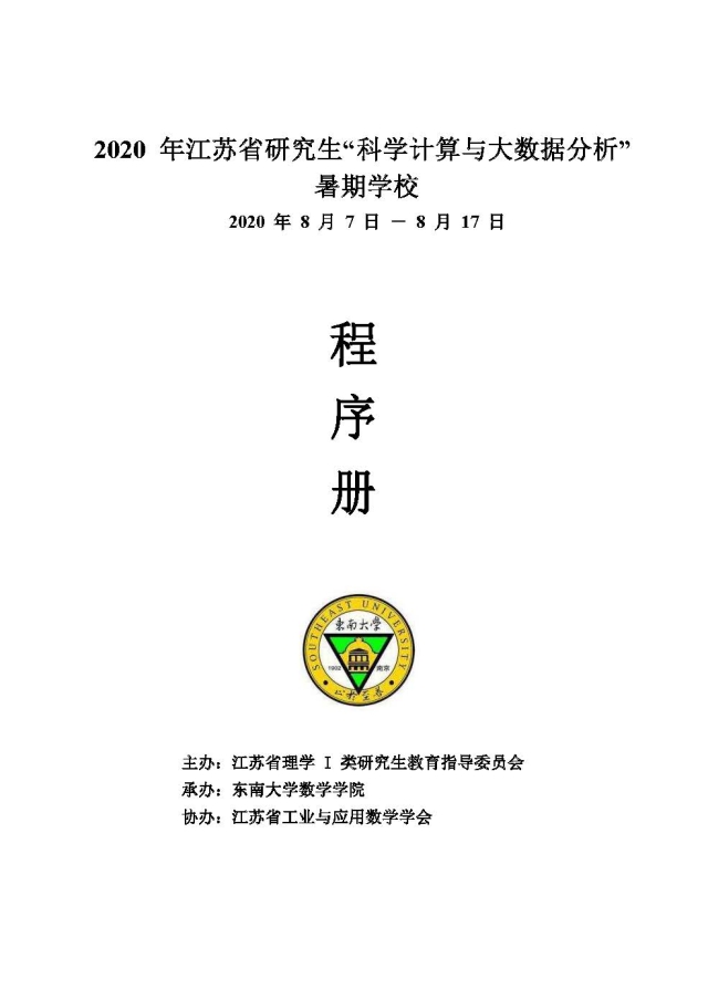 学术论坛:2020年08月07日-08月17日,2020 年江苏省研究生“科学计算与大数据分析”暑期学校