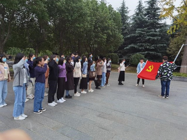 然后谢天宇同志作为新党员代表发言,讲述了其入党的动机,并代表新党员向党组织表达了决心。齐韧钧同志作为老党员代表发言。他表示通过此次参观雨花台烈士陵园,对中国共产党的有了更为深刻的理解,在日后的生活学习中将以身作则,充分发挥党员的模范带头作用。其次,他对新加入党组织的四位同志表示了祝贺,并且希望他们可以严格要求自己,成为思想和行动上都合格的共产党员。