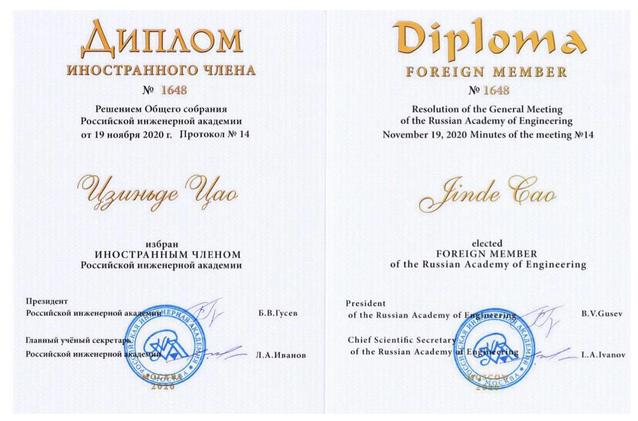 近日,俄罗斯工程院公布2020年新增院士名单,我院曹进德教授当选俄罗斯工程院外籍院士,以表彰他在应用数学、工程科学及推动现代科技创新的贡献。