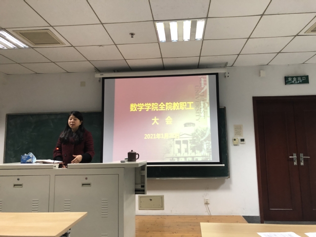 最后,吴映红书记汇报了学院的党委工作,她说2020年是极不平凡的一年,学院全面做好疫情防控工作,顺利完成党委换届选举,切实加强基层党建工作,全面落实巡察整改任务,扎实抓好师德师风建设,严格落实党风廉政建设,切实推进“十四五”事业规划编制和第五轮学科评估工作,学院在人才培养、平台建设、学科建设、师资队伍建设等方面均取得较好的成绩。2021年,学院将深入贯彻党的十九届五中全会精神,紧紧围绕国家发展战略,立足新阶段,贯彻新理念,构建新格局,确保“十四五”开好局、起好步,不断推动学院各项工作有新发展、上新台阶。