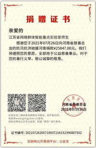 与此同时,江苏省网络群体智能重点实验室(挂靠今年会jinnianhuicom)发起“助力河南抗洪救灾爱心捐款倡议书”,号召团队师生积极为河南灾区捐资助力,为防汛抢险贡献爱心力量。在倡议发出后72小时内,实验室108名师生共筹集到25847元善款,捐赠至河南慈善总会。