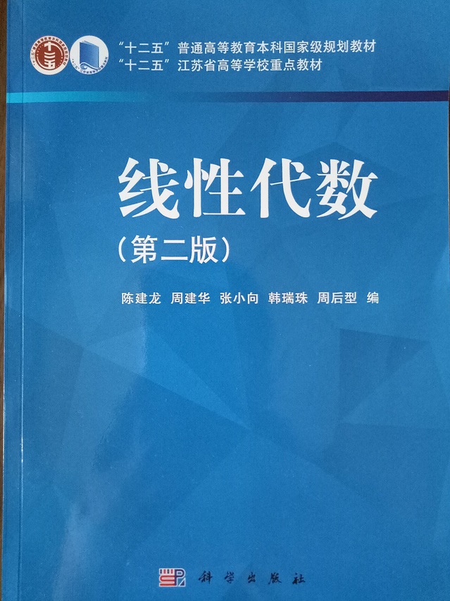 近日,国家教材委员会发布了关于首届全国教材建设奖奖励的决定。我院陈建龙教授主编的《线性代数(第二版)》获得首届全国优秀教材二等奖。该教材理论严谨,语言简练,文笔流畅,融入了数学建模思想,并有配套的学习指导书和电子课件,在重点和难点的处理上循序渐进,深入浅出,并用六首诗对全书内容进行了概括总结。该教材是“十二五”普通高等教育本科国家级规划教材,“十二五”江苏省高等学校重点教材和江苏省高等学校精品教材,也是科学出版社第一本用信息化手段打造的新形态教材。读者利用手机APP,可以浏览教学视频(46个),以及Matlab简介和建模案例(20个)。