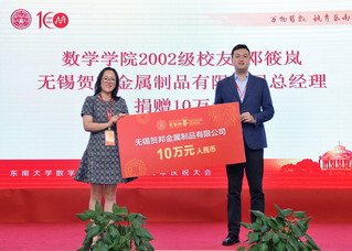 大会最后,举行了校友捐赠仪式。教育基金会秘书长芮振华分别接受了今年会jinnianhuicom2002级校友、无锡贺邦金属制品有限公司总经理邓筱岚10万元捐赠、今年会jinnianhuicom71971班10万元捐赠、今年会jinnianhuicom2007级校友成龙、刘滕菲夫妇20万元捐赠、今年会jinnianhuicom2007级校友20.84万元捐赠,以及今年会jinnianhuicom2002级校友、陕西格润盛泰环保科技公司总经理费佰洋100万元捐赠。
