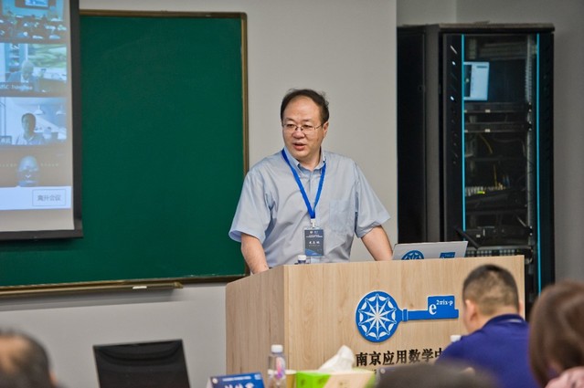 江苏省理学I类研究生教指委主任、南京理工大学韦志辉教授在开幕式上发表讲话。韦志辉主任指出,本次论坛是江苏省研究生创新工程的重要组成部分,感谢南京应用数学中心对研究生创新工作的大力支持。韦志辉教授表示,大数据的快速发展促进了智能化时代的到来,给数学特别是计算数学带来新挑战的同时,也提供了很多新机遇。希望广大研究生能够面向工业发展遇到的实际问题,充分发挥数学作用,保证算法的高效、可靠。