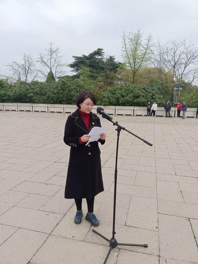 下午,与会全体人员来到南京雨花台烈士陵园开展现场主题教育活动。在庄严肃穆的雨花台烈士纪念馆,大家在讲解员的带领与讲解下,通过光电、影像、图片、实物资料等,深刻感受烈士先烈的丰功伟绩和崇高精神。进一步了解历史、增加党性、不忘初心、砥砺前行。随后,全体人员来到雨花台烈士纪念碑下举行凭吊仪式,仪式由学院党委副书记钟辉主持,全体人员庄严地向烈士敬献花圈并沉痛默哀,学院党委书记吴映红和硕士生第一党支部书记张淑婷同学分别讲话。吴书记指出,通过此次活动,我们要更加深入地了解中国革命和抗日战争的历史,传承革命先辈的优良传统和精神,更好地履行我们作为共产党员的职责。要不断加强和改进基层党建,建强党支部,激发基层活力、凝聚强大的人才向心力和战斗力。张淑婷同学表态,抚今追昔,我们更以一颗感恩的心祭奠烈士,革命先烈们表现出的坚定共产主义理想和信念,穿越时空,激励后人,英雄烈士的英勇事迹永远是我们心中的一块丰碑,从先烈的身上,每一位党员同志都将汲取无穷的精神和力量。