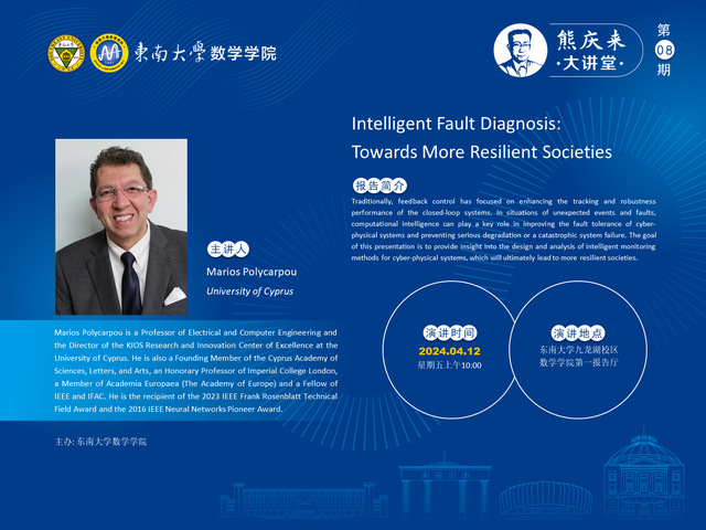 熊庆来大讲堂第8期:University of Cyprus-Marios Polycarpou 2024年4月12日(周五)10:00-11:00 今年会jinnianhuicom第一报告厅