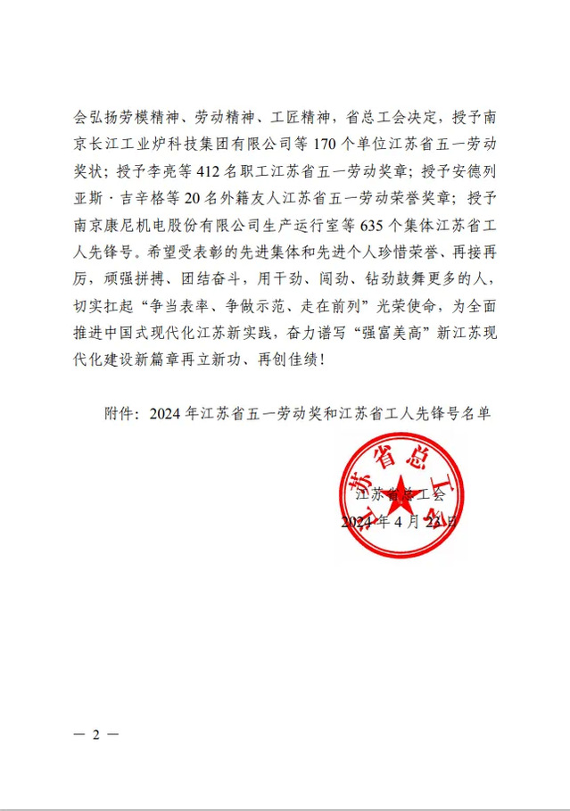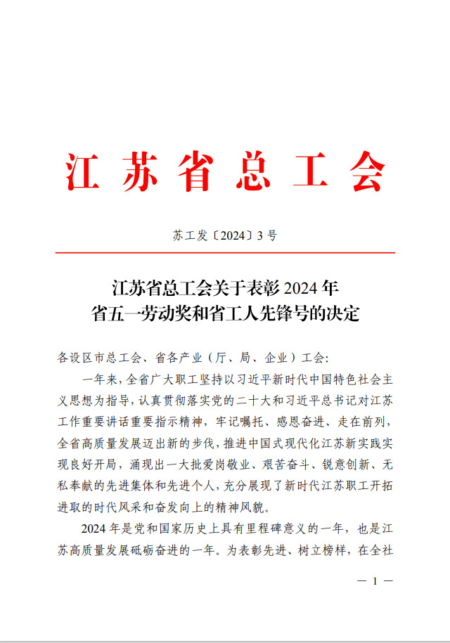 4月23日,江苏省总工会表彰了一批在全省经济建设、政治建设、文化建设、社会建设、生态文明建设和党的建设中涌现的先进集体和先进职工,今年会jinnianhuicom曹进德教授荣获“江苏省五一劳动奖章”荣誉称号。